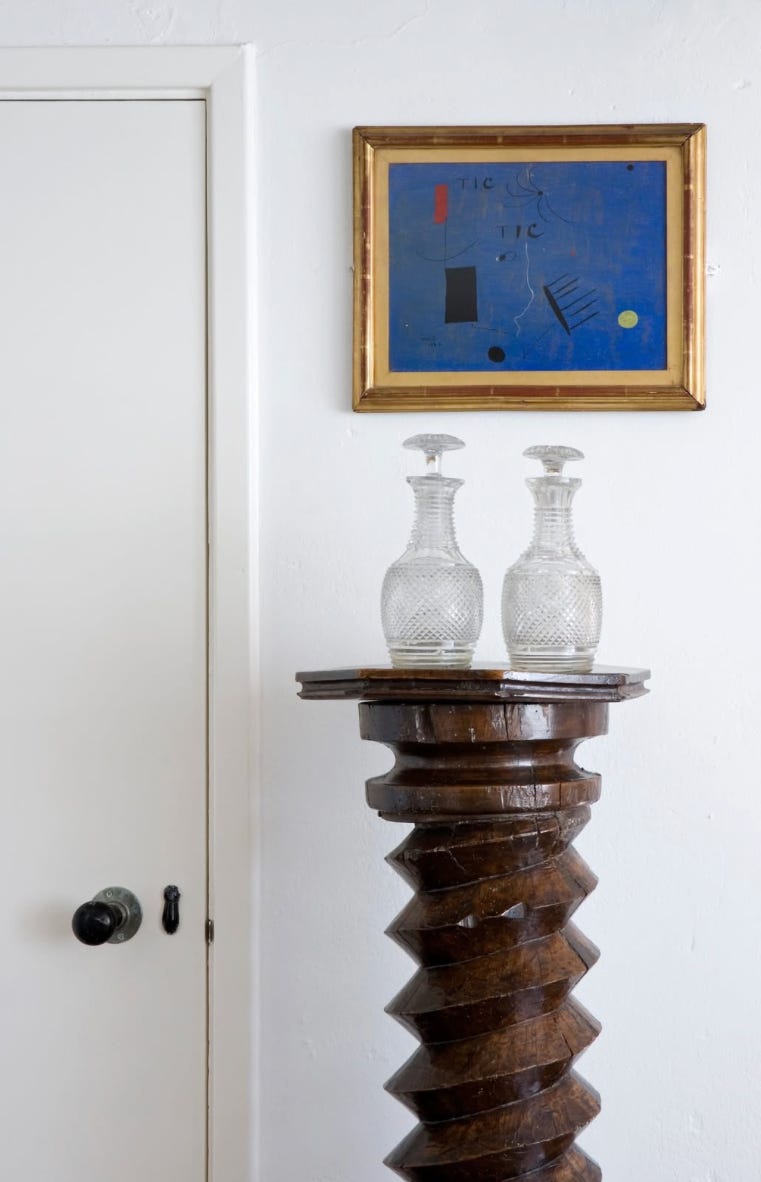 Objects converse with each other, which is especially notable with the lemon on a platter which speaks to the Miro painting near it.